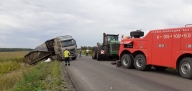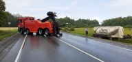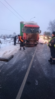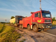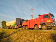 Повышенной сложности эвакуация грузовых автомобилей (постановка на колеса опрокинувшихся автомашин), вытаскивание на дорожное полотно